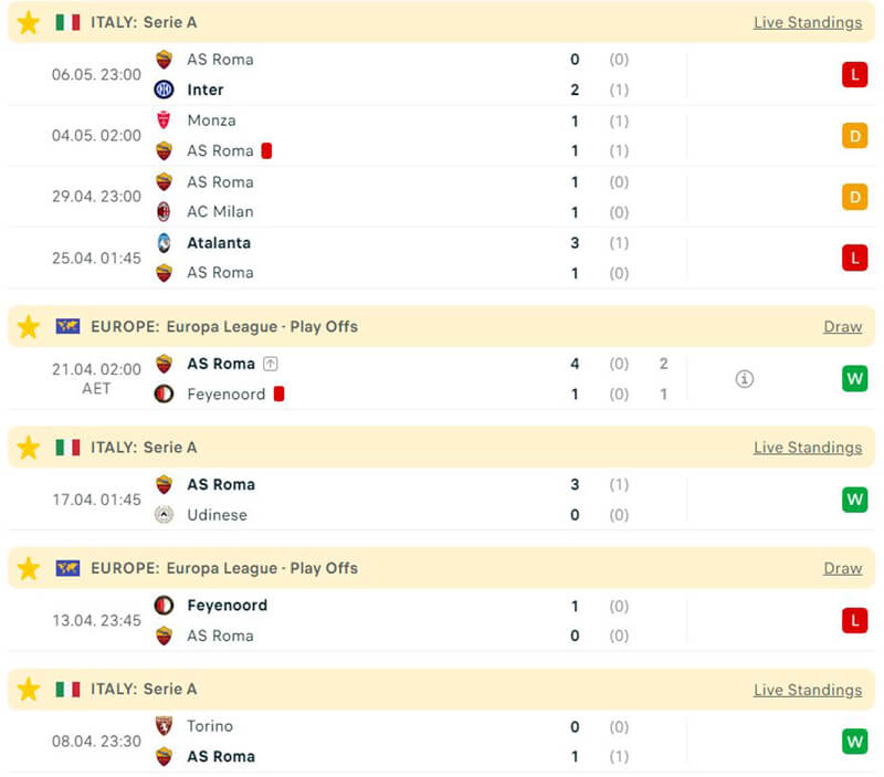 Trong khi đó, hàng công của Bayer Leverkusen đang sa sút phong độ nghiệm trọng, họ đã tịt ngòi 2/3 trận đầu vừa qua. Cả về phong độ hiện tại lẫn kinh nghiệm chinh chiến Bayer Leverkusen đều đang rất thua thiệt với AS Roma.