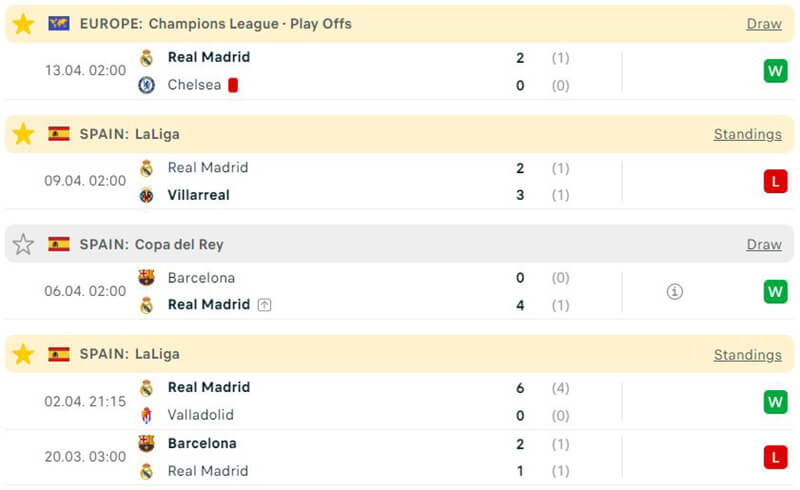 Phong độ thi đấu giữa Chelsea vs Real Madrid