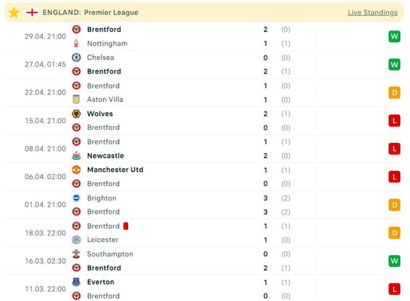Phía bên kia chiến tuyến, đội khách Brentford gần như không có cơ hội có điểm ở trận đấu này. Đội bóng này đã phải nhận 3 thất bại sau 6 trận đấu gần đây nhất; không chỉ vậy bầy ong còn để thua 3/5 trận khi phải làm khách.