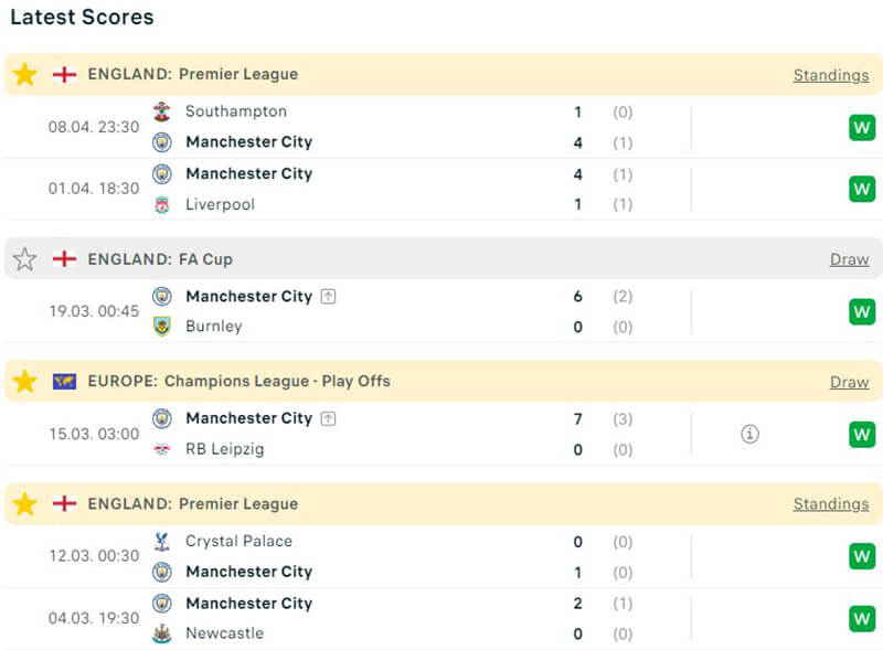 Ở 10 trận đối đầu nhau trong quá khứ thì Manchester City đã có tới 7 trận thắng còn Leicester City chỉ có được 3 trận. Với việc được chơi trên sân nhà nên giới đầu tư có thể hoàn toàn yên tâm khi đặt niềm tin vào Manchester City.