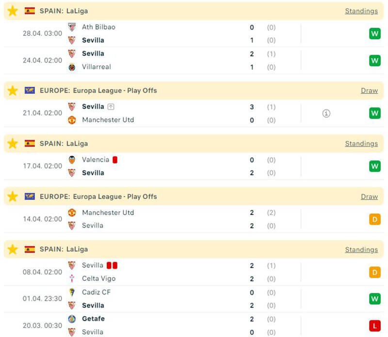 Đội chủ nhà Sevilla đang có phong độ rất tốt ở thời điểm hiện tại của mùa giải. Đội bóng này đã có tới 10/12 trận thắng khi chơi trên sân nhà, họ còn đánh bại cả Man Utd và giành được vé vào bán kết Europa League.